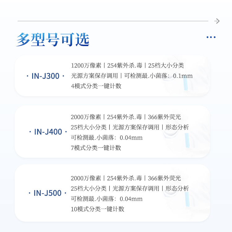 内置366nm紫外灯,可激发菌落荧光,满足大肠埃希氏菌计数、绿色荧光蛋白观察等需求